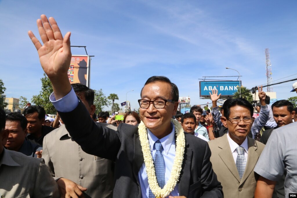 ျပည္ပခရီးထြက္ခြာၿပီးေနာက္ ကေမၻာဒီးယားႏိုိင္ငံကို ျပန္လာခဲ့တဲ့ အတိုက္အခံေခါင္းေဆာင္ Sam Rainsy ကို ေထာင္ေပါင္းမ်ားစြာေသာ ေထာက္ခံသူေတြက ေလဆိပ္မွာ ႀကိဳဆိုခဲ့ၾကပါတယ္။ ၿပီးခဲ့တဲ့လက က်င္းပခဲ့တဲ့ ေရြးေကာက္ပဲြေတြနဲ႔ ပတ္သက္ၿပီး စိန္ေခၚမႈတခု လုပ္ေဆာင္မယ့္ အေၾကာင္း သူ႔အေပၚ ေထာက္ခံသူေတြကို ကတိေပးခဲ့ပါတယ္။